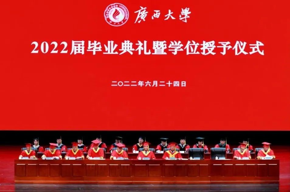 近日,我院2022届毕业典礼暨学位授予仪式在学校大礼堂隆重举行。仪式由我院何奕阳老师主持,院党委书记沈大强,院长邹炳锁,院党委副书记、常务副院长冯庆革,院党委副书记吴达慧,副院长梁洁、陈庆发,学院学术委员会主任何维,博士生导师农光再,材料加工工程系副主任潘利文,毕业生导师、班主任以及辅导员出席了本次仪式。