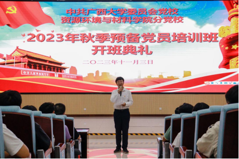 11月3日,我院2023年秋季预备党员培训班开班典礼在学院123报告厅举行。学院党委书记沈大强、培训班班主任范剑辉老师出席典礼,培训班全体学员参加本次开班活动。